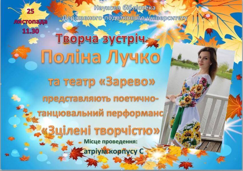 Запрошуємо на творчу зустріч з Поліною Лучко!