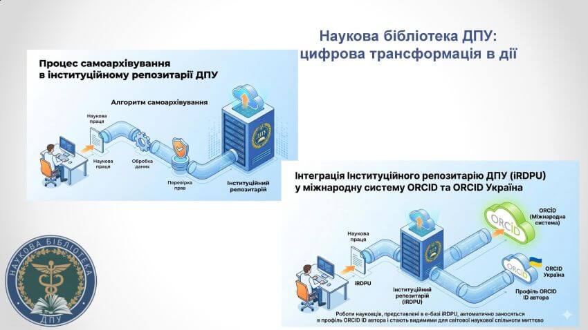Серед значної кількості наших ініціатив особливої уваги заслуговує успішна інтеграція Інституційного репозитарію ДПУ (iRDPU) у міжнародну систему ORCID та ORCID Україна.