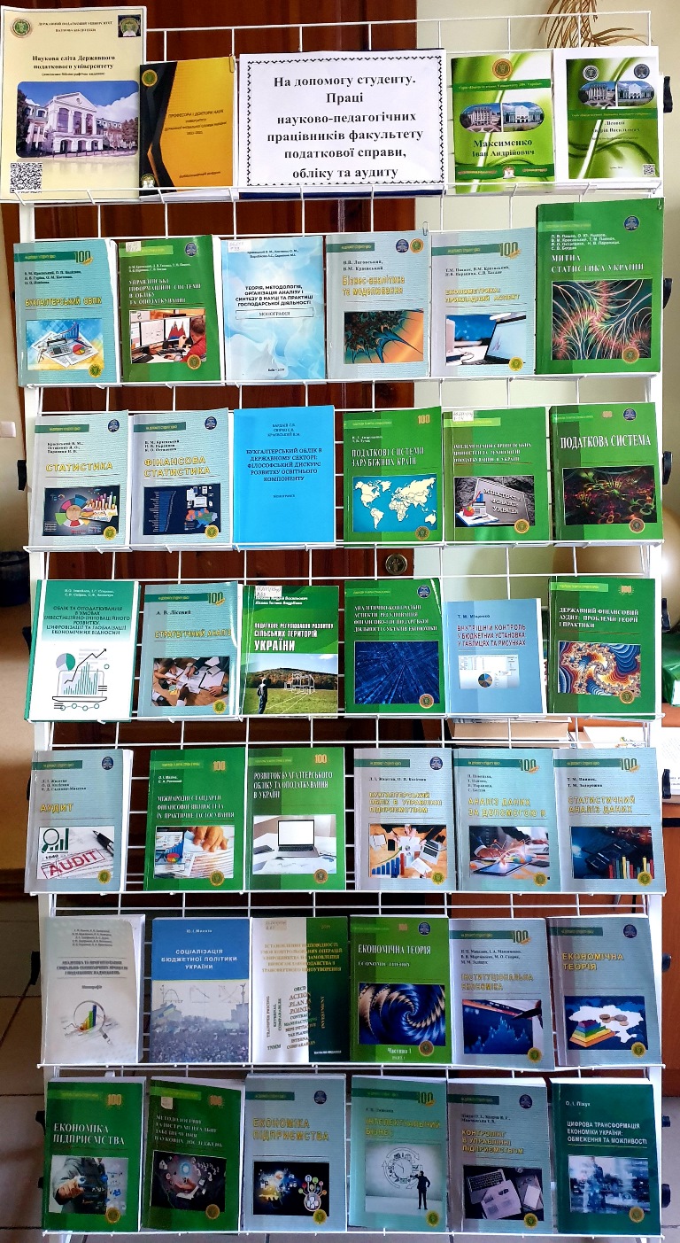 Також пропонуємо до перегляду віртуальну виставку «На допомогу студенту. Праці науково-педагогічних працівників факультету податкової справи, обліку та аудиту».